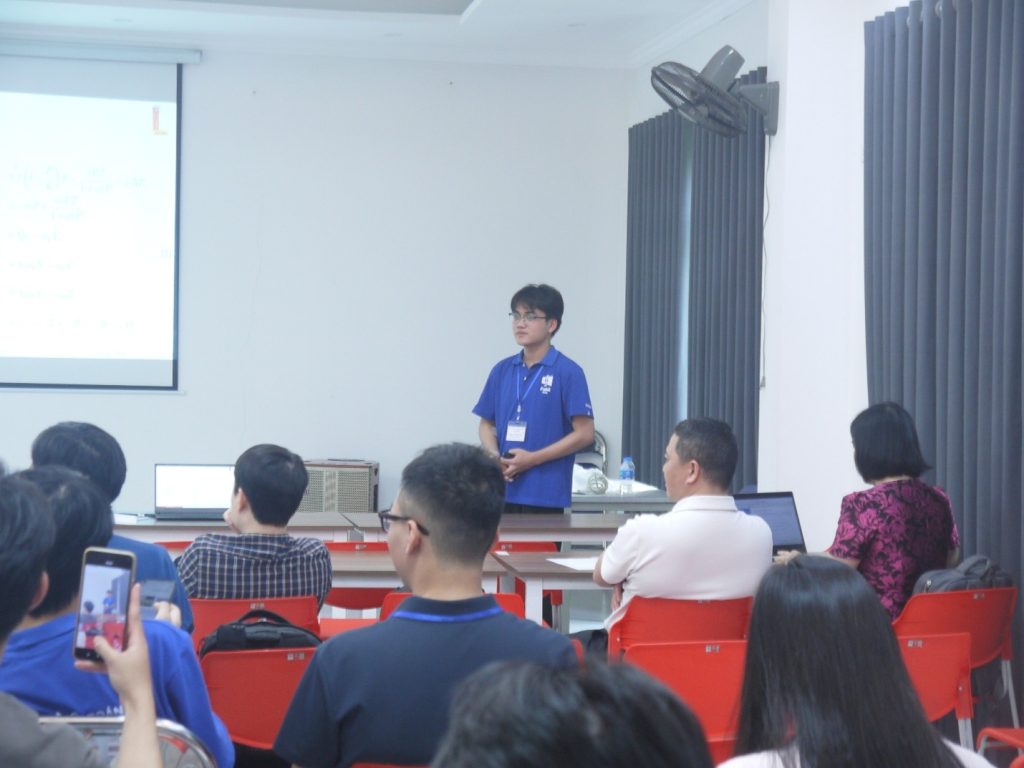 Báo cáo viên Chu Nguyễn Thái Sơn (Sinh viên Toán – Tin K68) với báo cáo: “Mô hình toán học cho hệ sinh thái 1 thú – 2 mồi dưới ảnh hưởng của biến đổi khí hậu và khai thác”.